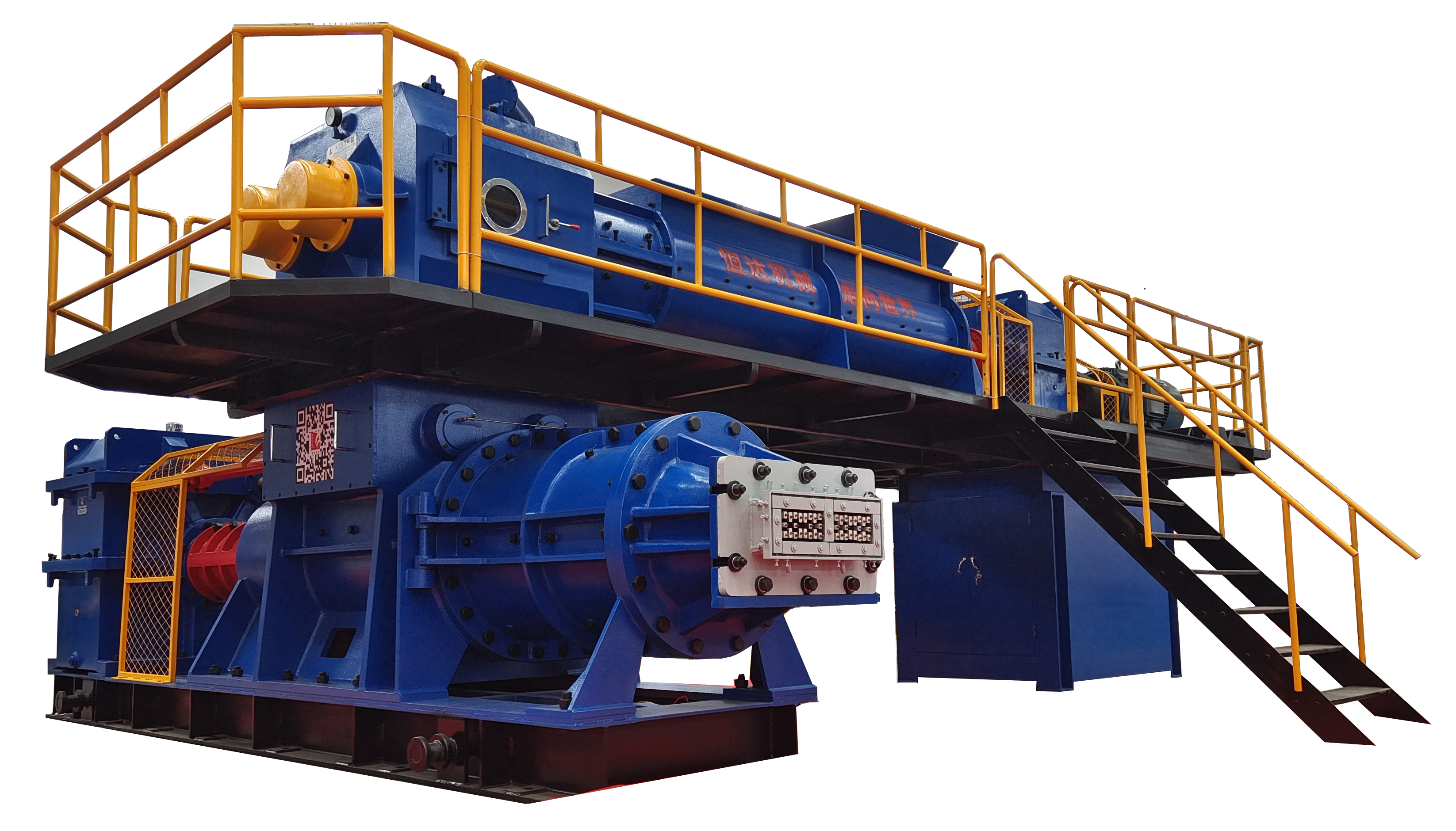 該機(jī)采用上、下級(jí)單獨(dú)傳動(dòng),上級(jí)采用單軸攪拌,箱體采用鋼板焊接,擠出壓力大,適用于高孔洞率,薄壁多孔的頁巖,煤矸石、粘土磚的硬塑成型。